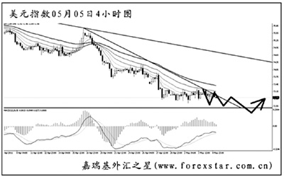美聯(lián)儲的超寬松政策前景導(dǎo)致美元反彈缺乏真正有效的支撐,因而美元往往在小反彈后依舊陷入低位盤整。美元指數(shù)本周三一度錄得近三年來的新低。從圖形上分析,美元指數(shù)最近一周都處于低位盤整的走勢中,匯價屢創(chuàng)新低,但幅度并不大,這種節(jié)奏對于階段性筑底成功較為有利,但現(xiàn)在還不能預(yù)測美元即將出現(xiàn)大幅反彈。4小時圖均線系統(tǒng)仍為壓制狀態(tài),從前一段時間美元指數(shù)的下跌力度判斷,后市匯價仍有望再度創(chuàng)出新低,但力度料將有限,下周將以探底回升的走勢為主。