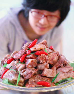 日前,在江蘇南京市南藝后街舉辦的奇石博覽會上,一位收藏愛好者展出由108盤奇石組成的“滿漢全席”,讓人為之叫絕。這些酷似美味佳肴的奇石基本是由瑪瑙石和戈壁石配成。圖為市民在奇石博覽會上欣賞酷似“手抓肉”的奇石。