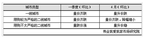 偉業(yè)我愛我家市場研究院表示,與一季度的成交特征相比,一線城市與限購不太嚴(yán)格的二線城市成交特征發(fā)生了明顯變化,原因主要有兩點(diǎn):