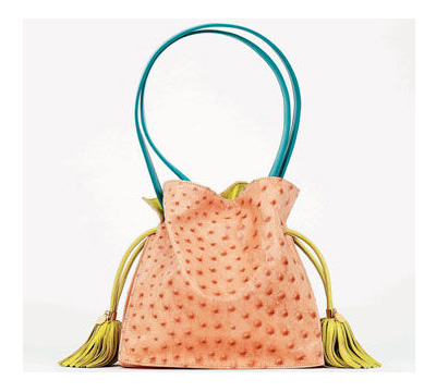 水粉三色鴕鳥皮質(zhì)流蘇手拎包 Loewe