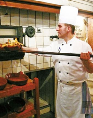 Cándido兩個(gè)餐廳的烤乳豬最有名。說(shuō)起來(lái)有點(diǎn)殘忍,西班牙的烤乳豬有“三三定律”:嚴(yán)格選用出生三周的幼崽(在此期間,它們只能喝母乳),在爐里慢