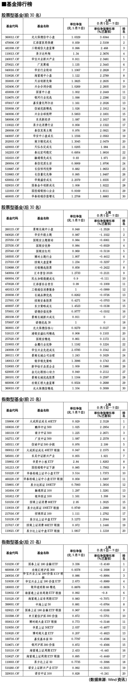 股票型基金排行榜[2011-05-13]
