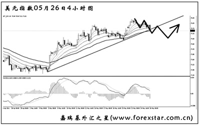 通過技術(shù)面分析,可以看到美元指數(shù)延續(xù)反彈走勢再度創(chuàng)出新高,MACD的頂背離角度明顯,多頭動能持續(xù)減弱。目前美元指數(shù)在考驗圖中的上升趨勢線,若跌破,將向道氏低點支撐74.90一線發(fā)起沖擊。日線圖上看,此波美元的上行斜率較大,均線系統(tǒng)也被突破,在短線下調(diào)的走勢結(jié)束后,有望繼續(xù)上沖挑戰(zhàn)76.55的阻力。