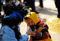 在這場(chǎng)狂歡盛宴中,我注意到不少都是全家出動(dòng),大人孩子從頭到腳都打扮得非常般配,看著那些可愛的親子裝,一家人其樂融融的樣子,頗讓人羨慕。雖說(shuō)孩子是“上帝派來(lái)索債的”,但孩子也是上帝的恩賜,尤其是在生育率持續(xù)走低的歐洲國(guó)家,一個(gè)家庭因?yàn)楹⒆拥牡絹?lái)而增添的樂趣是任何事情都不能比擬的。