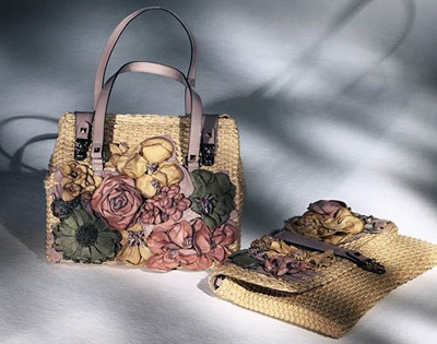 手工立體花朵裝飾的Valentino手袋是高超手工藝與相異材質(zhì)混搭碰撞的藝術(shù)品。皮質(zhì)手工花朵,經(jīng)過復(fù)雜程序和工藝的加工制作,花蕊與花瓣都生動逼真、惟妙惟肖;草編手拿包搭配立體皮質(zhì)花朵與漆皮搭扣,輕松把玩各種材質(zhì)的精微變化,游離于硬朗與溫柔之間。
