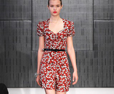 海邊的清風之中,濃烈的紅成為伊夫圣羅蘭YSL 2012早春度假系列女裝中精彩的一筆。修身剪裁的皮革風衣與白襯衫搭配,裸露出筆直修長的雙腿,紅色手包與黑色套裝的搭配再一次讓人沉醉于經(jīng)典配色的魅力。而到了后半場,當妖嬈的紅色罌粟花從衣角、腰際蔓延開來,在復古感的公主袖連身裙與雪紡禮服上綻放之時,伊夫圣羅蘭女郎們冷艷、魅惑、性感的氣質(zhì)也被釋放出來。