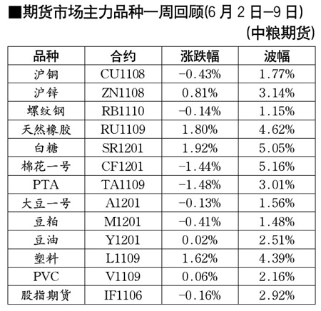 期貨市場(chǎng)主力品種一周回顧[6月2日-9日]