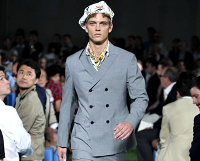2012春夏的男裝秀場(chǎng)!不是每個(gè)設(shè)計(jì)師都敢讓男人們穿上明媚艷麗的小碎花,但是在設(shè)計(jì)師繆西婭·普拉達(dá) (Miuccia Prada)