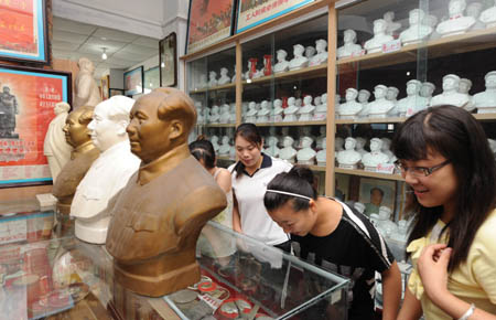 6月16日,在天津市武清區(qū)“東方紅收藏館”,市民參觀紅色文物。天津武清區(qū)農(nóng)民楊建清熱衷“紅色收藏”,從2005年10月1日建館以來,收藏了中國共產(chǎn)黨自1940年至1984年,包括解放區(qū)入黨誓詞、黨章、黨證、宣傳畫、塑像、書籍、報紙等共計20個專題系列藏品67000件。