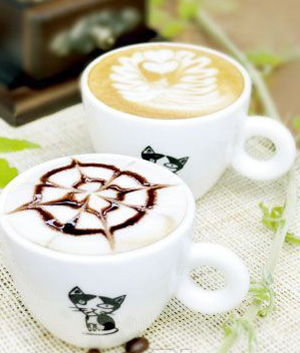 Art)。由于拉花的呈現(xiàn)要依賴于咖啡上那一層特殊的油脂,而這種油脂只有專業(yè)的咖啡機才能做出,因此,要先用咖啡機分別做好咖啡和牛奶,然后將牛奶向咖啡的中心注入,同時上下抬高奶缸,使咖啡與牛奶進行充分融合。在倒至七八分滿時,將缸嘴靠近咖啡液面,以咖啡杯杯緣處為起點,用牛奶畫出圖案。這就是所謂的咖啡拉花,不過,要完全掌握拉花的技藝并非易事,必須要經(jīng)過專業(yè)的學(xué)習(xí)和訓(xùn)練。