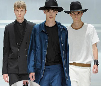 極簡、流暢、“Less is More”,設(shè)計師克里斯·萬艾思 (Kris Van Assche) 手中的迪奧·桀傲 (Dior Homme) ,在2012春夏繼續(xù)堅持著這樣的路線,黑白色調(diào)貫穿全場,衣衫上的紐扣也被省略成纖細的銀色圓環(huán),干凈利落的廓型散發(fā)著瀟灑、淡然的氣質(zhì)。棕色小羊皮材質(zhì)的運用,則為淡然如水的翩翩少年們增添了些許成熟與硬朗。