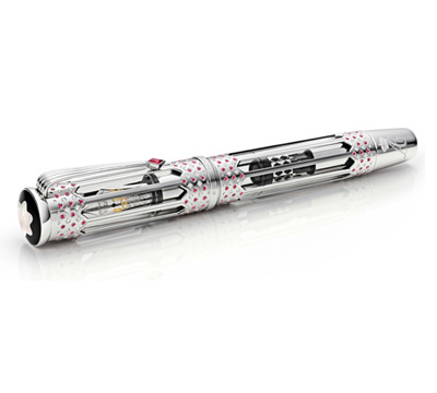 此名筆杰作蘊(yùn)含歐陸工藝傳統(tǒng),見(jiàn)證了無(wú)比浪漫的動(dòng)人情感;白金筆帽及筆桿有斜方體圖案,并鑲嵌162顆紅寶石及128顆美鉆,與摩納哥國(guó)旗色彩呼應(yīng);最大顆的寶石為筆夾上的菱形紅寶石,18K金筆咀有白鴿、戒指及皇冠雕刻圖案,以象征這次歐洲皇室盛事;筆帽頂鑲珍珠貝母萬(wàn)寶龍星形商標(biāo),以示名筆珍罕價(jià)值,并賀親王伉儷百年好合,福澤綿長(zhǎng)