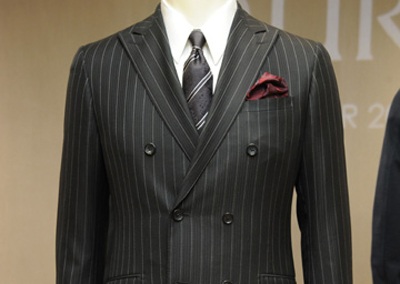 以黑色、灰色及灰藍(lán)色作為整個系列的基調(diào),選用非傳統(tǒng)面料的炭灰色雙排扣西裝是這一個系列的亮點,以相同色調(diào)的襯衣哲學(xué),配以一件灰藍(lán)色襯衫,突顯穿衣者的獨(dú)特品味。設(shè)計師也細(xì)意為男士準(zhǔn)備了羊毛面料的外套跟背心外套的配搭,隨意換上一件休閑襯衫、羊毛領(lǐng)呔及長褲,就已經(jīng)散發(fā)出高雅的味道。翻領(lǐng)上的鈕扣孔及拉錬,包含了結(jié)合日本革新科技及歐洲經(jīng)典設(shè)計的精神,由格仔所組成的條紋,已經(jīng)可以感受到男士穿著時的時尚魅力。