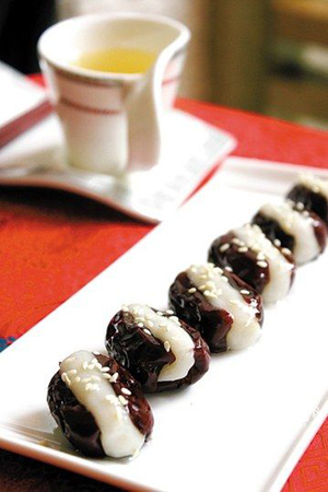 老板娘對于食材特別挑剔,如果碰不上好食材寧愿不做。像“心太軟”,就是在紅棗里面夾著糯米,紅棗必須要用蘋果棗,才能個頭大而且香甜。這道招牌甜品,“唇紅齒白”就是它的最好寫照,口感飽滿而不膩,一口一個,就像在吃一粒QQ彈牙的紅棗。