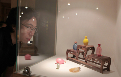 7月16日,“2011中國百年鼻煙壺展”在北京拉開帷幕。幾百件鼻煙壺的收藏在展覽中躍然呈上,種類齊全。展覽以清代鼻煙壺精品和當(dāng)代實力派內(nèi)畫大師黃三創(chuàng)作的內(nèi)畫鼻煙壺精品為主,滿足了眾多收藏愛好者對鼻煙壺歷史的了解以及對現(xiàn)場展示的內(nèi)畫作法的了解。讓更多喜愛本原文化的人對鼻煙壺的門類有了新的認識。