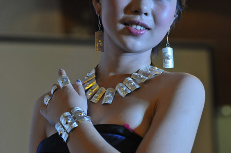 7月19日,一場(chǎng)別具民族特色的銀飾展示會(huì)在貴州省黔東南苗族侗族自治州凱里市舉行,模特登臺(tái)展示多款“苗族風(fēng)”銀制首飾與銀制工藝品,吸引眾多游客前來參觀。據(jù)了解,本次展示會(huì)還在現(xiàn)場(chǎng)進(jìn)行銀飾拍賣,所得款項(xiàng)將用于資助當(dāng)?shù)氐呢毨W(xué)生。圖為模特在凱里苗族銀飾展示會(huì)上展示銀飾品。新華社發(fā)