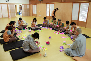 這種寺廟生活體驗(yàn),最初是2002年世界杯時(shí),韓國為了向外國人宣傳韓國文化與韓國佛教開始的。因此不只佛教信徒可以參與,沒有經(jīng)驗(yàn)的普通人也非常適合。學(xué)習(xí)寺院禮節(jié),了解寺院的結(jié)構(gòu)與每日活動,從陌生到熟悉,體驗(yàn)新的生活,休養(yǎng)身心,這是參加寺院生活體驗(yàn)營的真正價(jià)值。