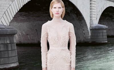 Tisci將這些不可思議的絕美作品帶到了巴黎的塞納河畔碼頭拍攝群像。這一畫面,仿佛是將理想世界搬到塵世之中,在寧靜的藍天白云映襯下,天使般柔美的華服與城市中的工業(yè)背景以及堅硬的鵝卵石路面形成最鮮明的對比。