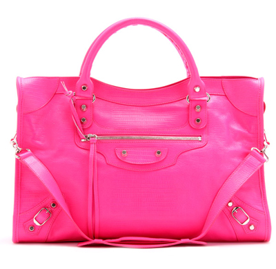 2011秋季最新的熒光色蜥蜴紋壓花小牛皮機(jī)車包已于7月28日在歐洲奢侈品網(wǎng)站mytheresa.com開始獨(dú)家銷售,喜歡的同學(xué)們趕緊下手阿!該系列機(jī)車包有電藍(lán)、亮粉和熱橙三種色彩,售價(jià)1,045歐元。亮粉色新鮮上架,而電藍(lán)和熱橙色將在下周上線。