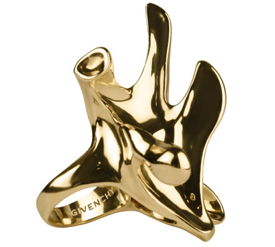 Tisci延續(xù)了去年秋冬高級定制系列的靈感,將蘭花的廓形與抽象化的骨骼完美融合,成就了這款光芒閃耀的珠寶杰作。這款戒指宛如一件可以佩戴的雕塑,在植物與動物、有機物體和礦石等元素的運用上顯得游刃有余。