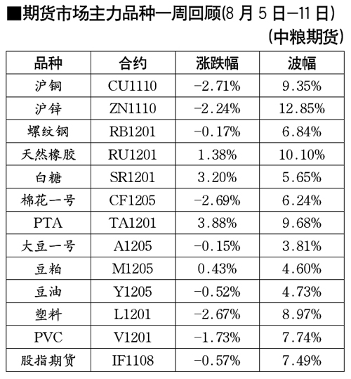 期貨市場(chǎng)主力品種一周回顧[8月5日--11日]