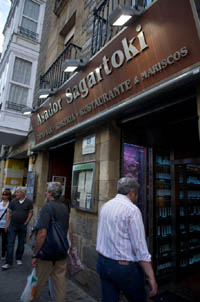 按照“旅游指南”的推薦,我們來(lái)到Vitoria最好的一家蘋果酒酒館,這家名為sagartoki的蘋果酒酒館是當(dāng)?shù)刈钪木起^。很多人來(lái)這里并不是沖著蘋果酒,而是這里的塔帕斯。