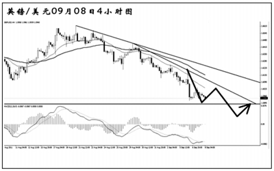 英鎊兌美元短線的下行趨勢已經(jīng)形成,均線系統(tǒng)空頭排列,后市匯價仍有進(jìn)一步下跌的風(fēng)險。日線圖的道氏低點1.6110被跌破后,英鎊即將向1.5780一線逐步挺近。圖中有兩條下降壓力線,可以看出英鎊最近的下跌斜率在逐漸加大。預(yù)計英鎊小幅上調(diào)之后仍將以下行走勢為主。