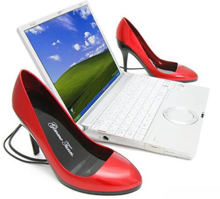 潔白的筆記本電腦邊上擺上一雙高跟鞋,誰會猜到這是一對音箱呢?想象一下,回到家中,把鞋子一拖,往桌上一擺,插在筆記本電腦上,來一首輕松的交響樂放松下,一天的勞累就這么釋放了。