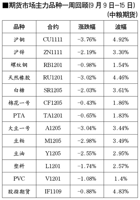 期貨市場(chǎng)主力品種一周回顧[9月9日-15日]