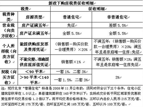 另外,我愛我家社區(qū)專家提醒購房者,上表中賣掉小戶型所涉及的稅費(fèi)是按照出售房屋定義為普通住宅,而購置大戶型時的契稅是按照非普通住宅計(jì)算的。具體的稅費(fèi)征收明細(xì)請看下表: