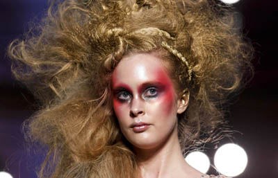 在英國(guó)倫敦2012年春夏時(shí)裝周上,模特展示英國(guó)設(shè)計(jì)師薇薇恩·韋斯特伍德(Vivienne Westwood)品牌的最新時(shí)裝。倫敦2012年春夏時(shí)裝周于9月16日至21日舉行。新華社發(fā)