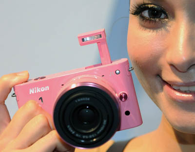 9月21日,日本尼康公司在香港舉行新聞發(fā)布會,宣布推出全新的輕便型無反光鏡可換鏡頭相機(jī)Nikon 1系列以及專用的尼克爾鏡頭,首推“Nikon 1 J1”“Nikon 1 V1”兩款新產(chǎn)品,并于10月20日開始全球發(fā)售。圖為模特在展示Nikon 1 J1相機(jī)。