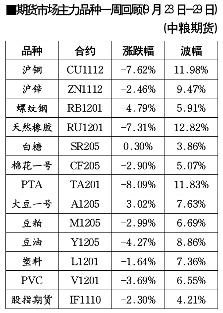 期貨市場(chǎng)主力品種一周回顧[9月23日-9月29日]