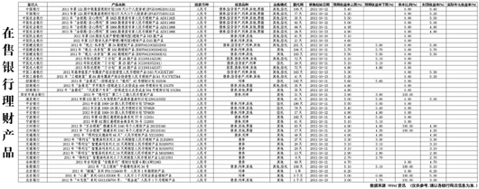 在售銀行理財(cái)產(chǎn)品[2011-10-14]