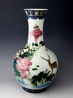 由中國(guó)國(guó)家博物館出品的“福、祿、壽、喜、財(cái)”五大吉祥瓶開(kāi)始在國(guó)內(nèi)外正式發(fā)行!案、祿、壽、喜、財(cái)”五大吉祥瓶是國(guó)家博物館為建館100周年大慶特別出品、發(fā)行的一套高檔仿古瓷器藏品,由國(guó)內(nèi)工藝美術(shù)大師親自繪制。圖為“福、祿、壽、喜、財(cái)”五大吉祥瓶中的“祿”瓶。