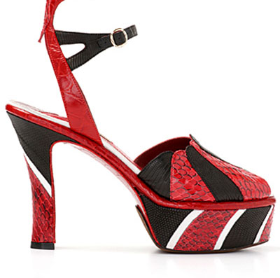 以高檔皮具聞名世界的西班牙品牌Loewe 2012春夏帶來(lái)粗細(xì)適中的高鞋跟,有了前端防水臺(tái)的設(shè)計(jì)讓舒適度陡增。 這一季,Loewe在鞋子的設(shè)計(jì)上除了蛇紋拼接的處理以外, 更以抽象的概念將整體花紋構(gòu)建出結(jié)構(gòu)清晰的視覺(jué)感官,讓每一雙鞋都堪稱藝術(shù)精品。