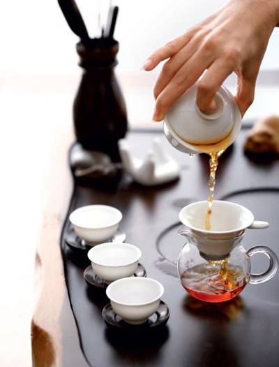 品飲紅茶還是選擇白瓷茶具吧,干凈清爽,也能看見茶湯的美麗色澤,沸水沖下,浸出濃郁甘甜的茶湯,秋冬季節(jié),這種韻味深遠(yuǎn)、富有成熟氣息的茶應(yīng)該是愛茶人的心頭好吧。公道杯中的紅茶色如潤玉,像是老物件有了包漿一樣,低下手腕,茶湯緩緩被注入到面前的品茶杯里。喝茶的杯子適宜小小的,一口能飲盡茶湯,不然茶湯容易變涼,總是沒有熱的時(shí)候富有滋味。