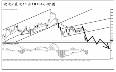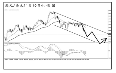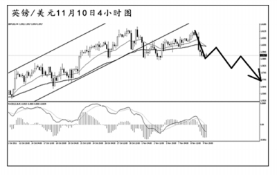 澳元兌美元的此波下跌將上升趨勢(shì)線跌破,均線系統(tǒng)壓制排列。澳元短線創(chuàng)出新低,重新挑戰(zhàn)1.1000的進(jìn)程受阻,后市繼續(xù)發(fā)生下挫的概率較大。4小時(shí)圖MACD處于空頭動(dòng)能充盈的階段。澳元調(diào)整過(guò)后仍將以下跌為主,操作上可考慮小倉(cāng)做空,關(guān)注圖中通道下沿的支撐力度。