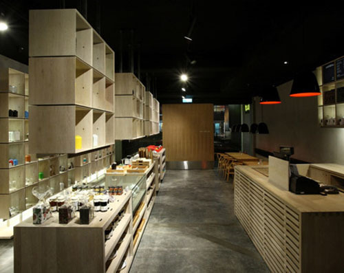 J?rgensen之手。茶館分兩層,一層擺放及產(chǎn)品展示架及木制家具,二層則是用餐室。木材與混凝土結(jié)合起來的室內(nèi)別具一番清新、自然的美感,與茶的細致、微妙相互融合,自然會勾起顧你與茶呼應(yīng)的無限情懷。