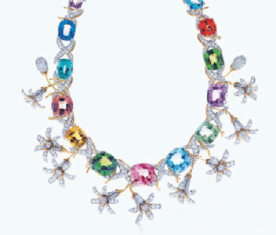 TIFFANY的設計師認為,自然界是最好的珠寶設計師,TIFFANY的設計師們從來善長于運用自然元素,為TIFFANY的追隨者們帶來無數(shù)的驚喜。集合了來自世界各地的所有16顆彩色寶石的茉莉花項鏈,是TIFFANY設計師、寶石詩人Jean Schlumberger的杰作,9朵茉莉花與16顆炫麗寶石相映成趣,想像著9朵茉莉花繞于頸間,是否感受到那一陣陣茉莉花香帶來的清雅脫俗?