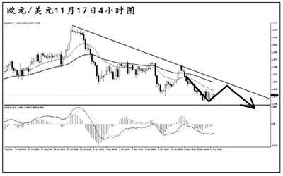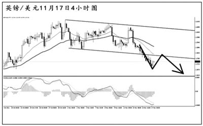 歐元兌美元受到下降壓力線和均線系統(tǒng)的雙重壓制,短線繼續(xù)下跌。MACD出現(xiàn)了底背離信號,歐元面臨一定的回調壓力。但是從日線圖上看,空頭動能仍然充盈,歐元上調將考驗趨勢線的阻力1.3650一線。操作上做空仍然是順勢,如若做多屬于抓反彈的交易,倉位需要降低。