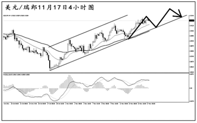 美元兌瑞郎在上升通道中運行完好,均線系統(tǒng)多頭排列。從日線圖上分析,目前這波上漲屬于第五浪,因此匯價再創(chuàng)新高的希望很大,此波匯價首先要挑戰(zhàn)的阻力為0.9315高點。但同時考慮到通道上沿的阻力作用以及短線發(fā)生的多頭動能減弱信號,預計直接大幅創(chuàng)新高并不值得期待。