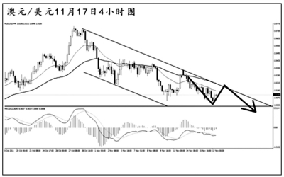 澳元兌美元沿圖中的下降通道緩步下行,均線系統(tǒng)壓制排列。匯價短線頻創(chuàng)新低,后市繼續(xù)發(fā)生下挫的概率較大。澳元上行回調的阻力為通道上沿,位置在1.0200一線下方。預計匯價小幅上調之后仍將以下跌為主,逐步向通道下沿一帶挺進。