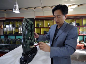 如今,劉宏收藏的碧玉原石有幾十噸之多,他所經(jīng)營(yíng)的“瑪河玉都”已經(jīng)成為一個(gè)集碧玉原石收集、銷售、設(shè)計(jì)、雕刻、批發(fā)、零售為一體的碧玉生產(chǎn)、銷售龍頭企業(yè),被當(dāng)?shù)卣椤坝袷c(diǎn)采購(gòu)單位”。