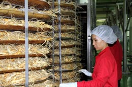 戴上頭套和腳套,我們懷著好奇的心情走進(jìn)工廠,一一觀看各道生產(chǎn)工序。天然的人參經(jīng)由機(jī)器清洗后,通過傳送帶被送至蒸箱,完成了最關(guān)鍵最核心的蒸參環(huán)節(jié)后,顏色變紅,又通過傳送帶,被碼放到曬盤。自然晾曬20多天后,再由有經(jīng)驗(yàn)的工人手工篩選,分為天、地、良三種級別。其中,天字號紅參為頂級,是上等的國禮,據(jù)說在1995年中國國家主席訪問韓國時,韓國贈送了10支“天參”。