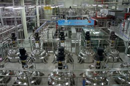 在工作人員的指引下,我們接著參觀了常人難以進(jìn)入的VVIP區(qū)——人參精加工區(qū)。這里又是另一番天地。透過玻璃窗,我們看到幾百臺圓形的大型機(jī)器,沿著管道有序排列,一刻不停地運(yùn)轉(zhuǎn)著。這就是韓國人參公社特殊的人參精制造工藝,將紅參的精華——汁液濃縮成人參精,制成各類產(chǎn)品,方便消費(fèi)者食用。整個人參精的加工過程需要15天,不可停歇。為保證絕對安全,加工區(qū)域?qū)嵭腥忾]。