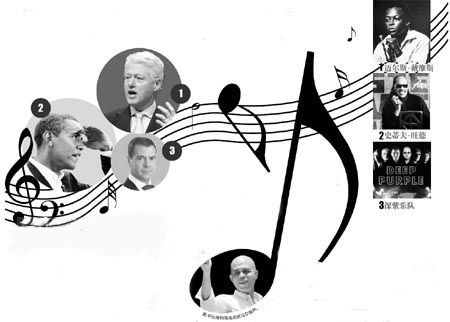 總統(tǒng)音樂愛好各不同(左側政要們鐘愛的音樂人分別對應于右側數(shù)字)。