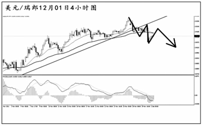 美元兌瑞郎此前小幅沖破了10月初的高點0.9315,此后匯價持續(xù)回落,2B反轉(zhuǎn)走勢形成。短線匯價發(fā)力下挫,跌穿了4小時圖的均線系統(tǒng)依托。目前匯價正在挑戰(zhàn)道氏低點支撐0.9080,跌破后將進一步打開下行空間。操作上可等待此支撐跌破后繼續(xù)做空。