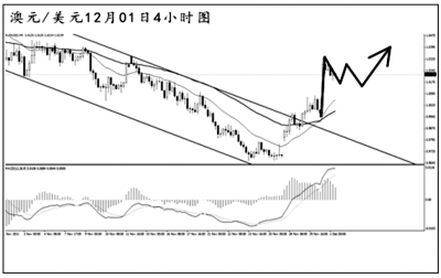 澳元兌美元本周開盤后一直表現(xiàn)出強力上漲的態(tài)勢。4小時圖的下降通道被很快升破,此后匯價繼續(xù)上沖,即將挑戰(zhàn)1.0340-1.0440一線阻力。短線澳元受到均線系統(tǒng)的依托作用,同時向上的主趨勢完好,可繼續(xù)看漲。不利因素在于止損幅度過大,投資者做多要嚴控風險。