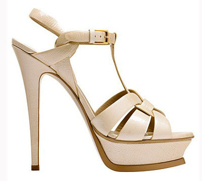 擅以繽紛色彩表現(xiàn)浪漫時(shí)尚態(tài)度的法國(guó)品牌Yves Saint Laurent 2012鞋履系列再次將這一特色完美展現(xiàn)。波浪造型的鞋底、反差極大的撞色邊線、防水臺(tái)設(shè)計(jì)配合挺拔的超高跟和果凍般的鞋履材質(zhì),帶來(lái)了全新的感官體驗(yàn)。